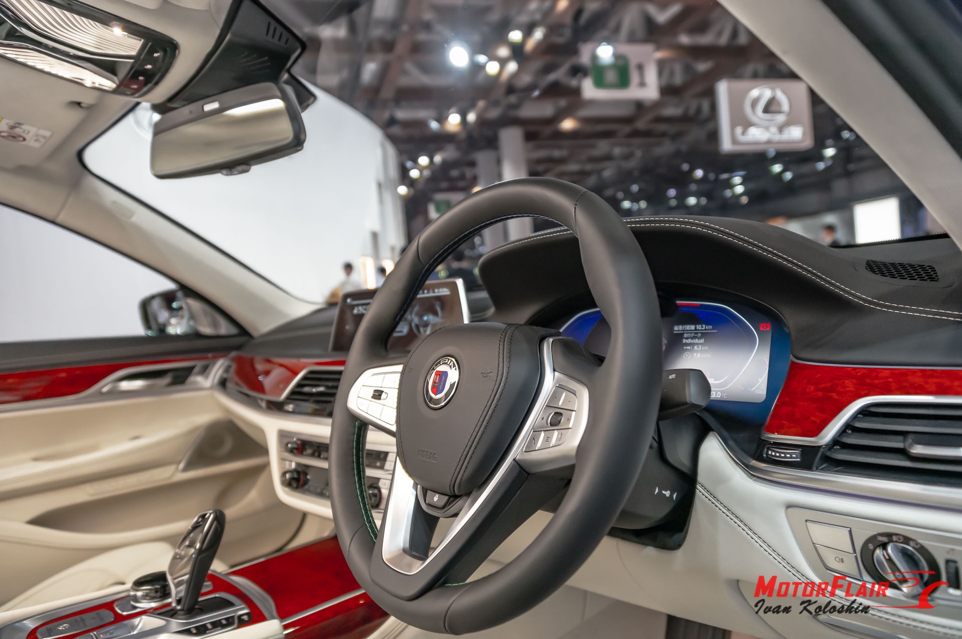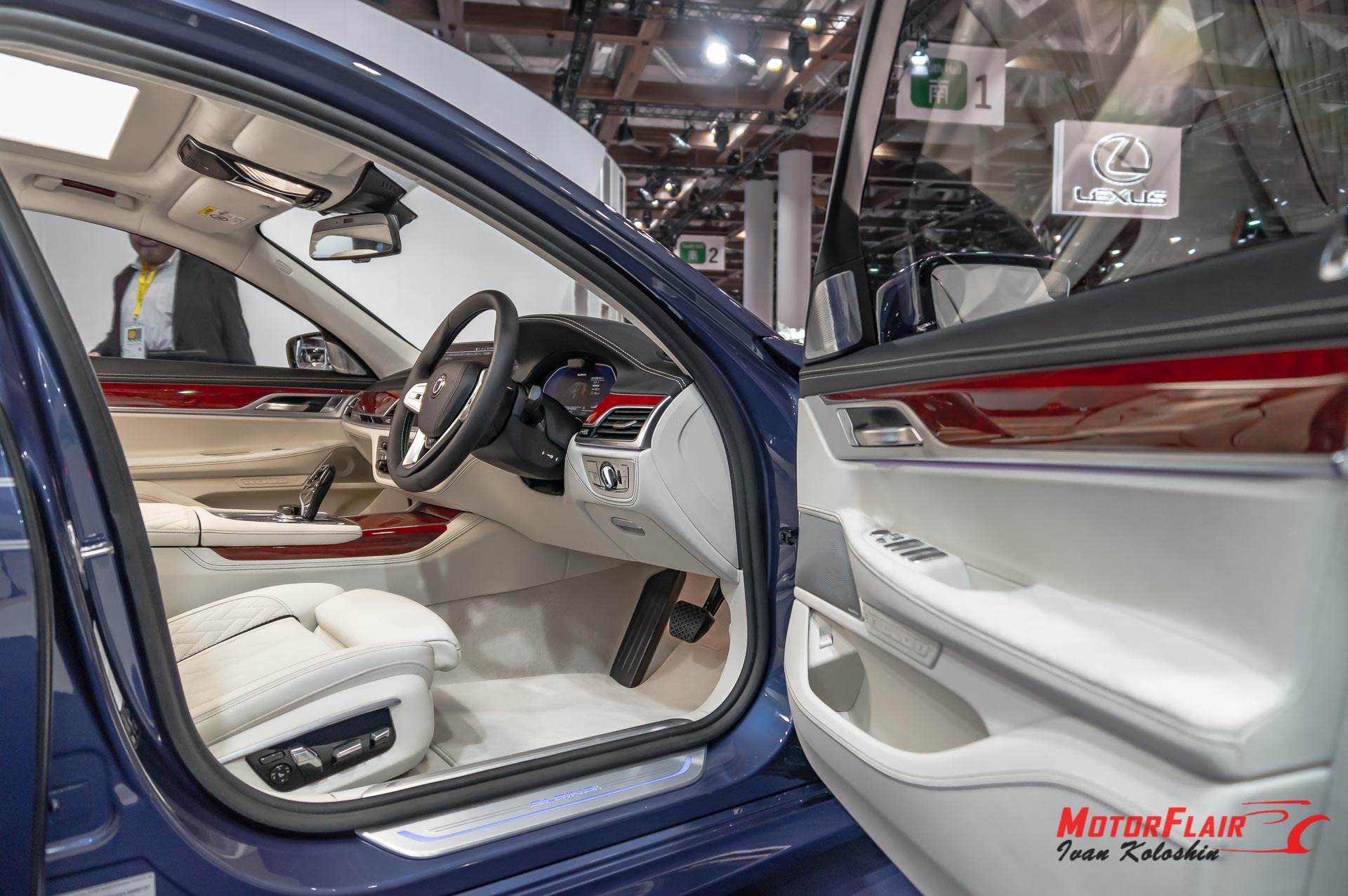 The cabin is adorned by the hand-stitched LAVALINA leather upholstery, the ALPINA leather steering wheel, the open-pore wood dashboard trim, embossed ALPINA emblems and the ALPINA lettering on the door sills.