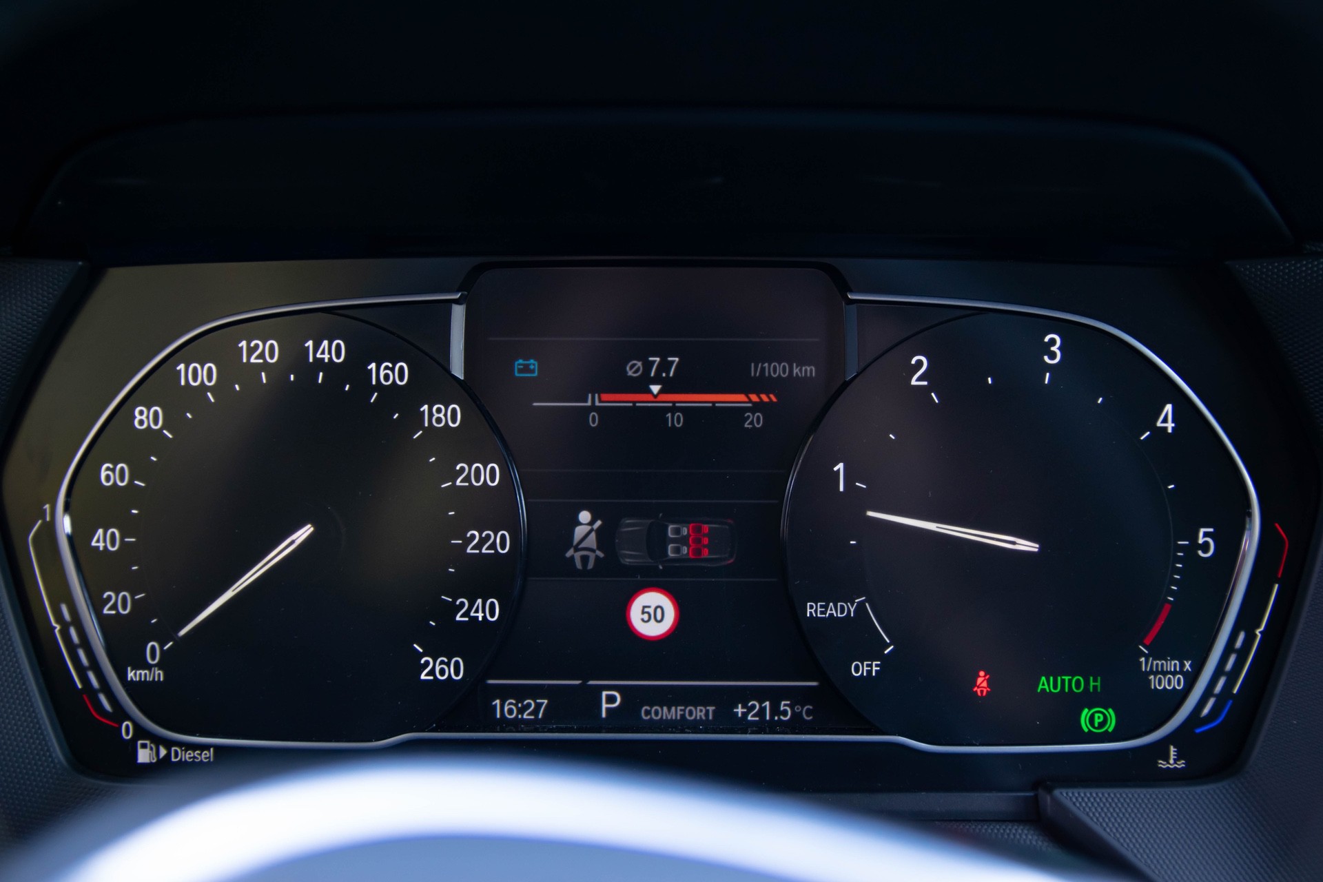 The standard digital instrument cluster is more to my liking for one reason: It’s simple! There’s nothing fancy about it, nothing to blow you out of the water, it’s just there to offer the information you need. The layout is simple enough and looks roughly like the old analogue cluster from the 1 Series and the current 2 Series.