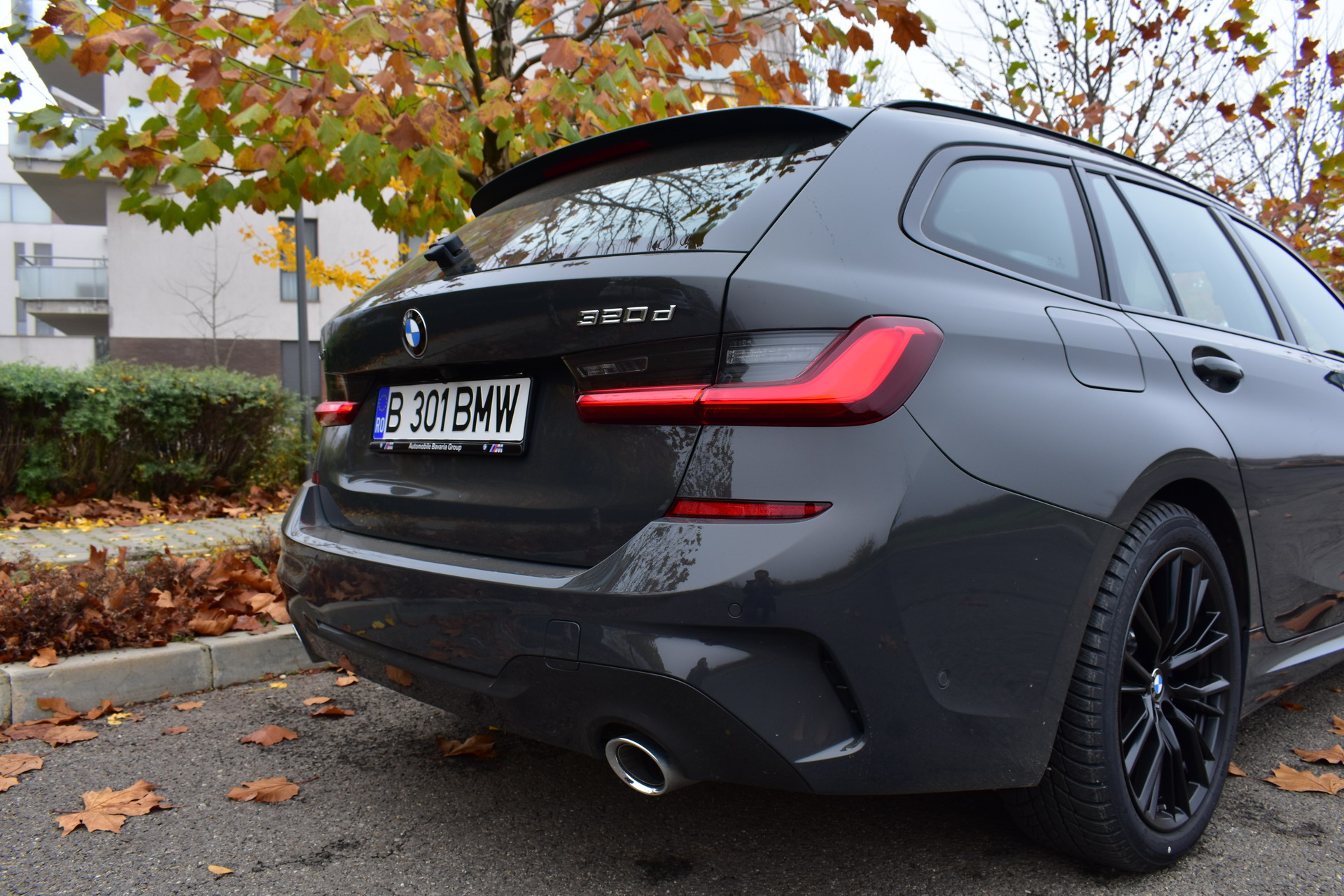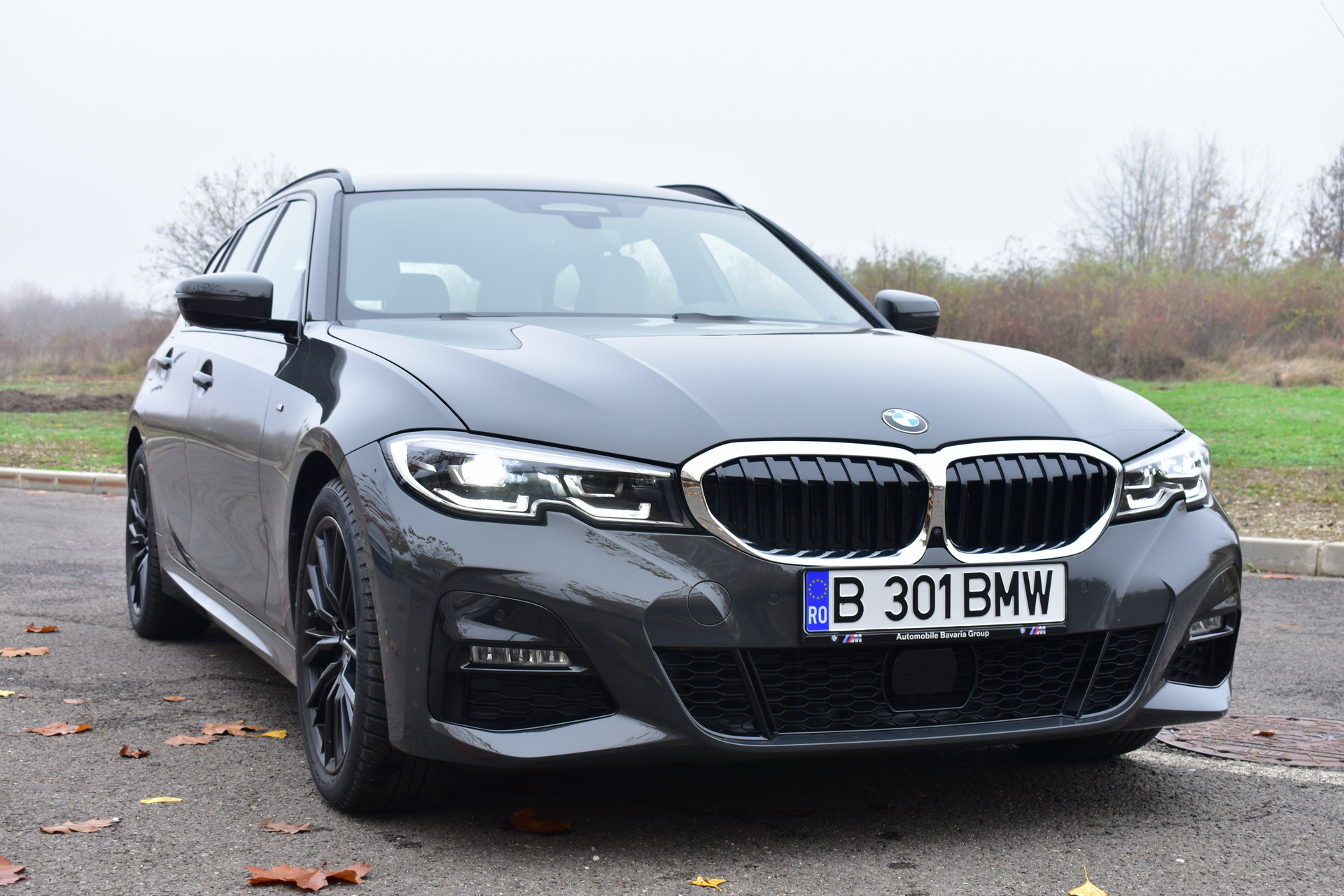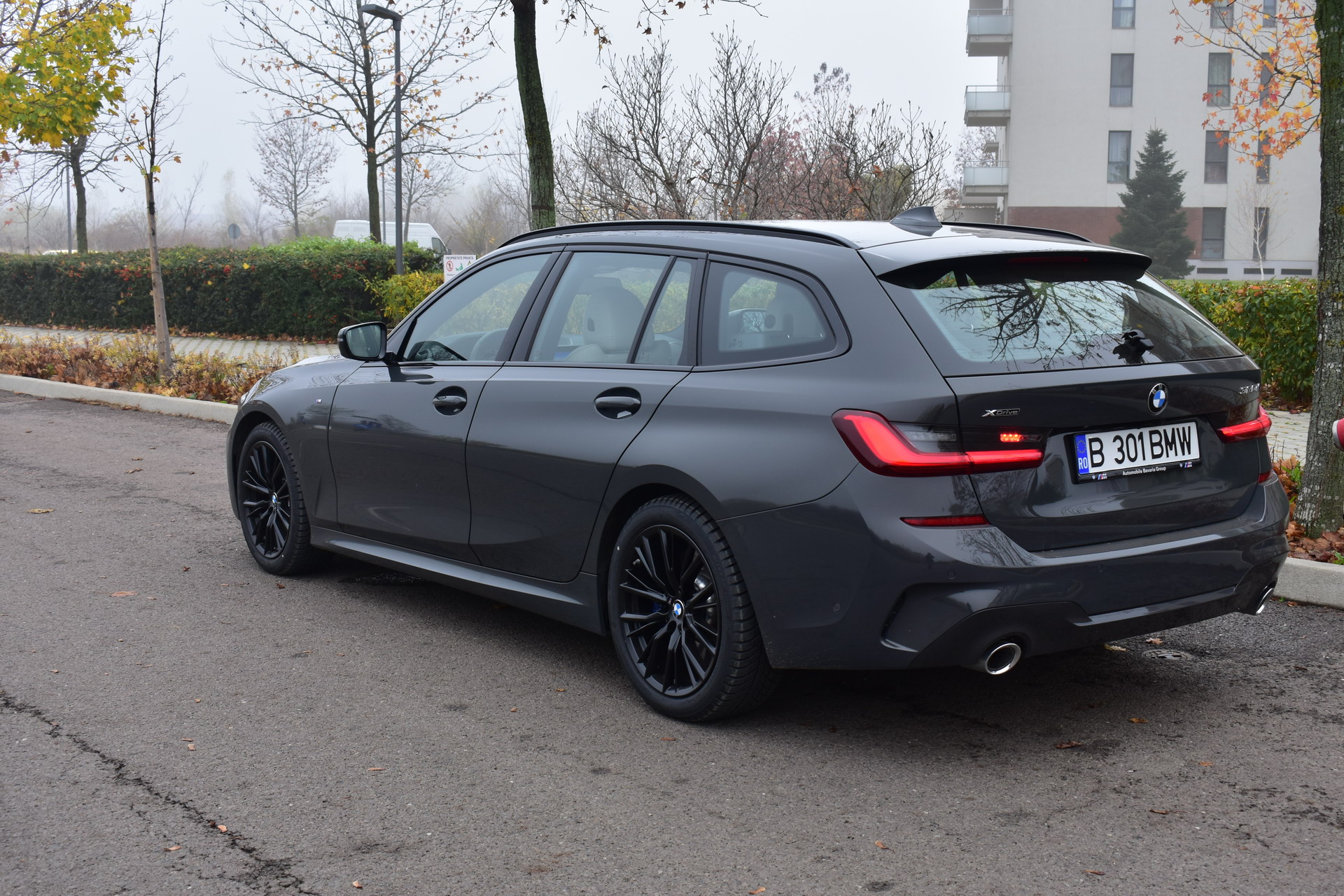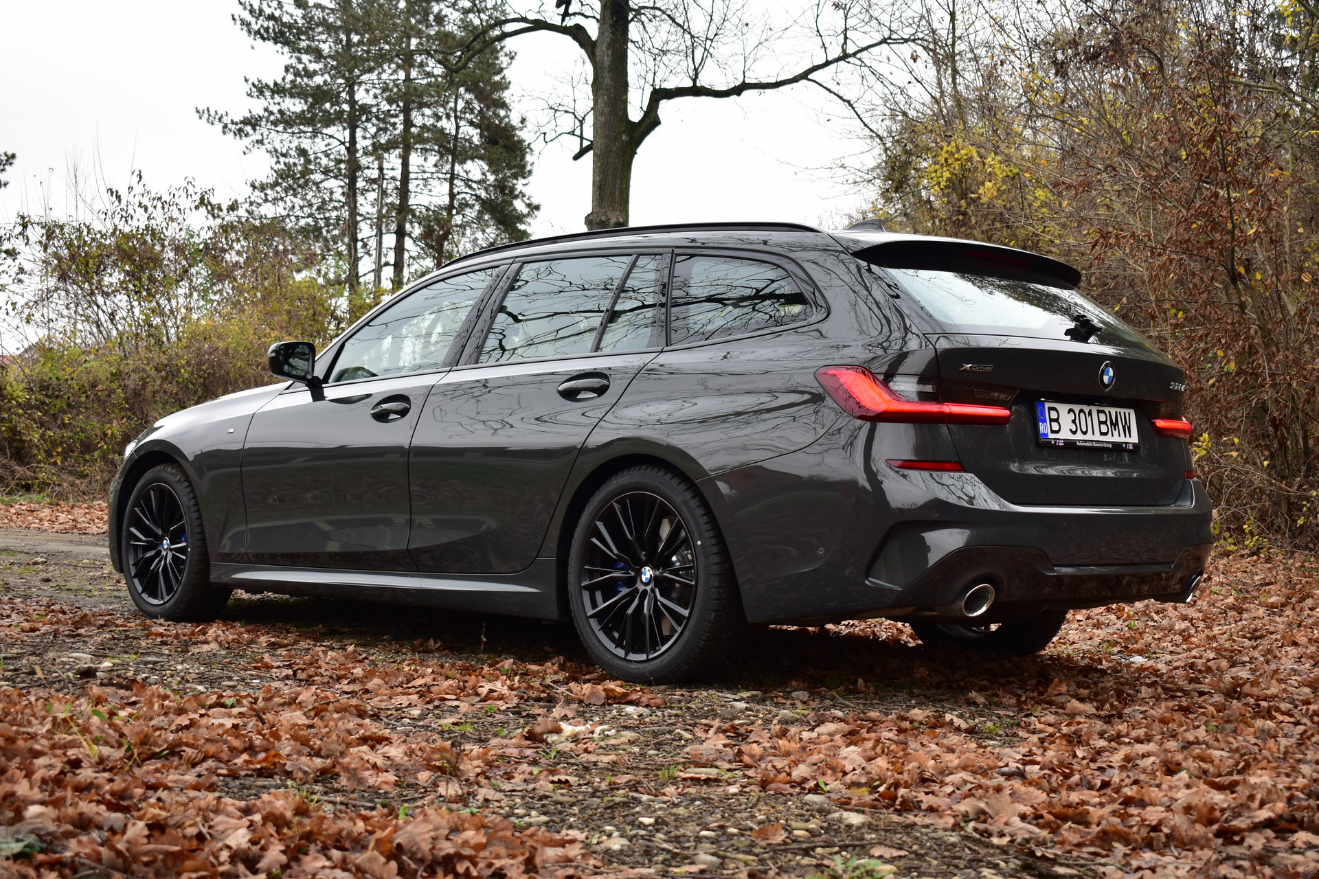 The BMW 320d xDrive Touring M Sport test car was sporting the BMW Individual high-gloss Shadow Line all-black exterior ornaments, the deep BMW Individual Dravit Gray metallic color and the 18-inch, matte black M Sport 796M alloy wheels with winter tires, which comprehensively round off the astonishing design of the Bavarian sports wagon.