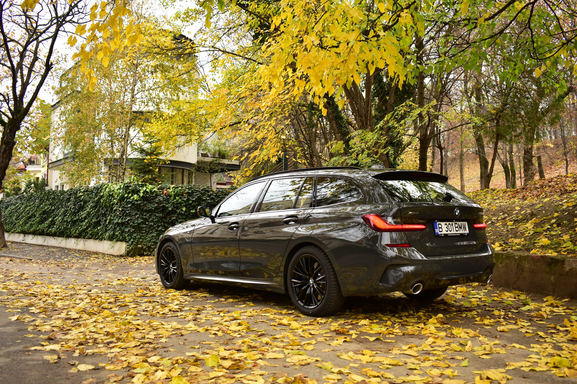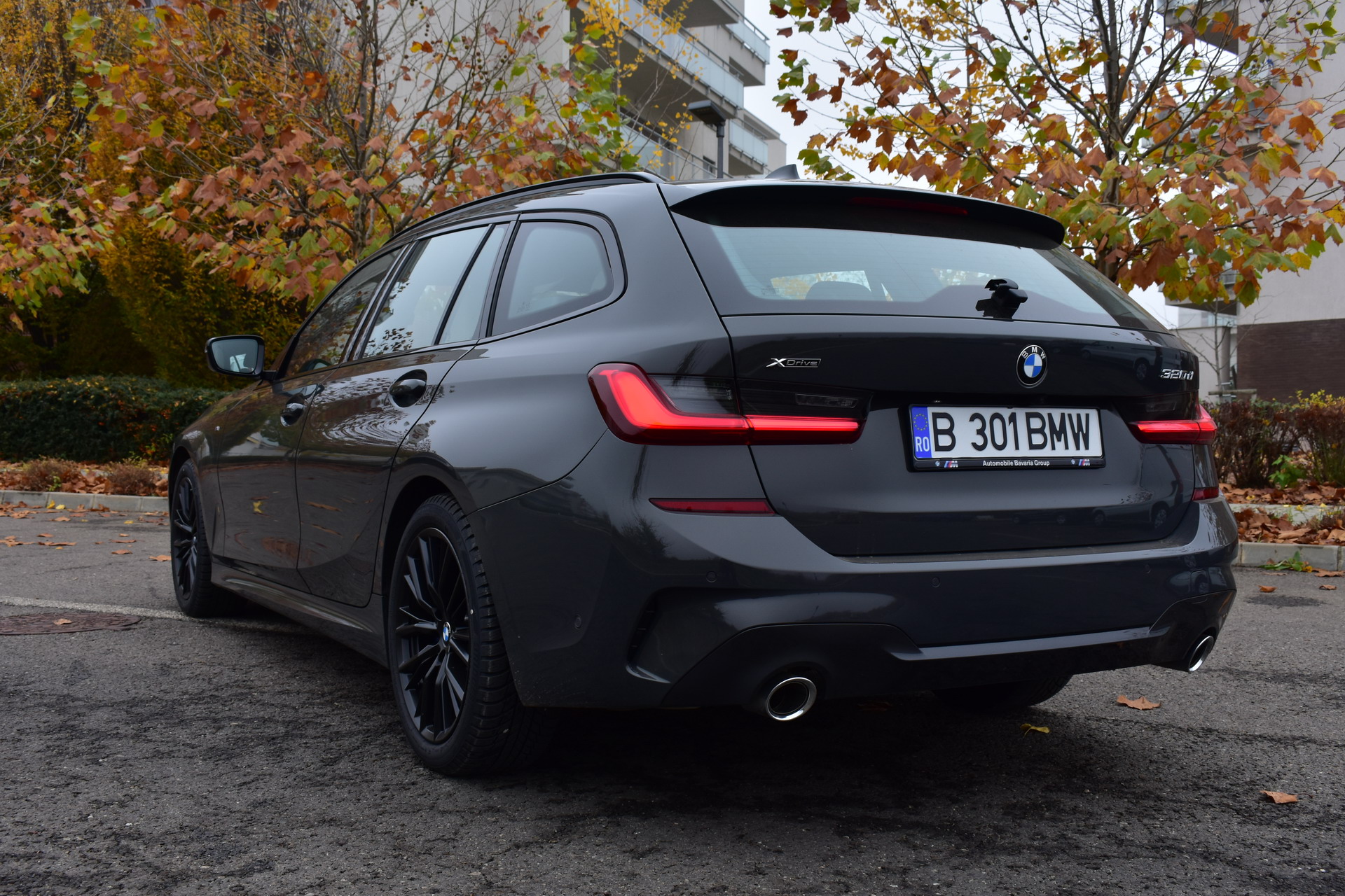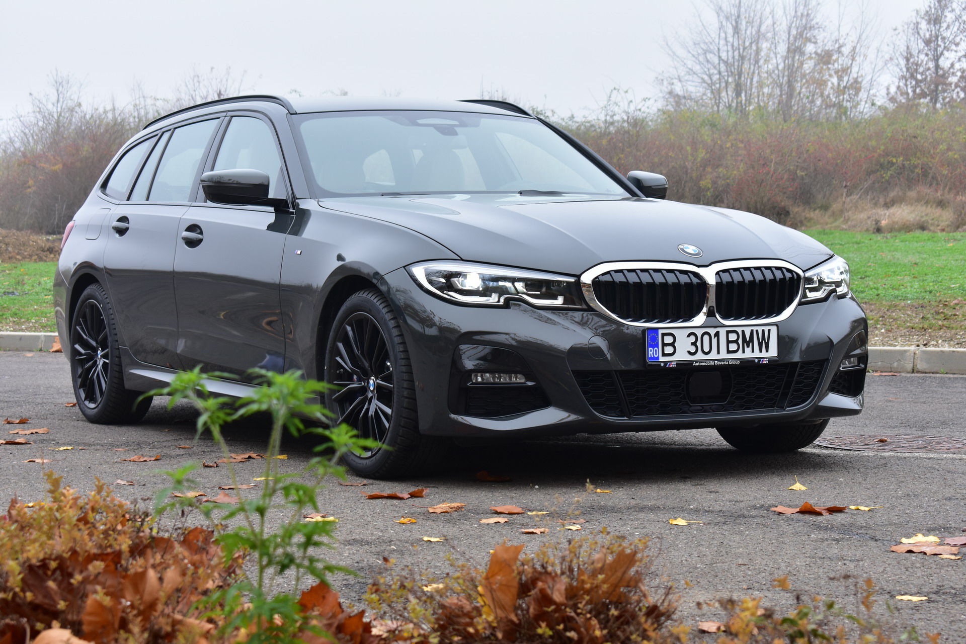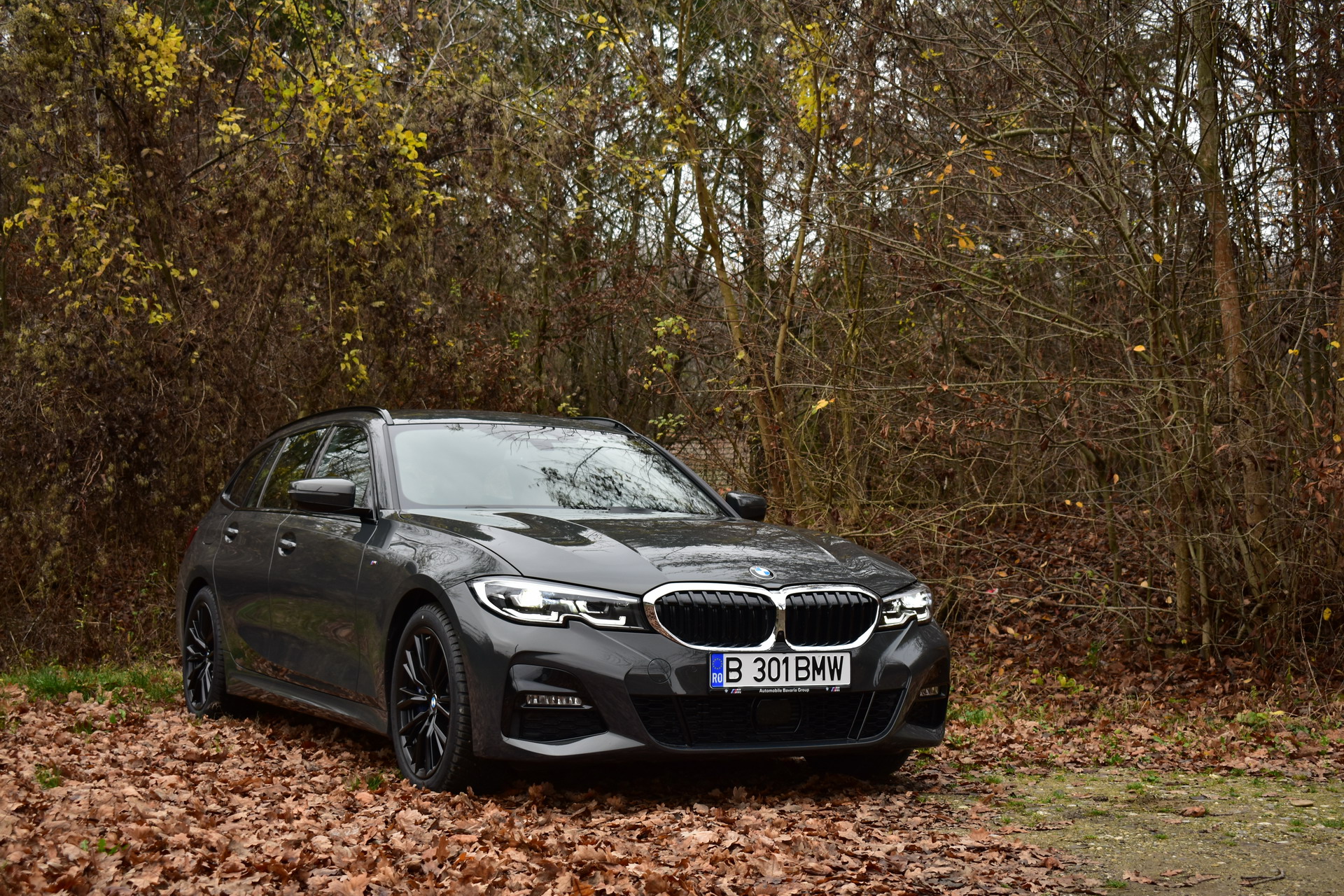 The BMW 320d xDrive Touring M Sport test car was sporting the BMW Individual high-gloss Shadow Line all-black exterior ornaments, the deep BMW Individual Dravit Gray metallic color and the 18-inch, matte black M Sport 796M alloy wheels with winter tires, which comprehensively round off the astonishing design of the Bavarian sports wagon.