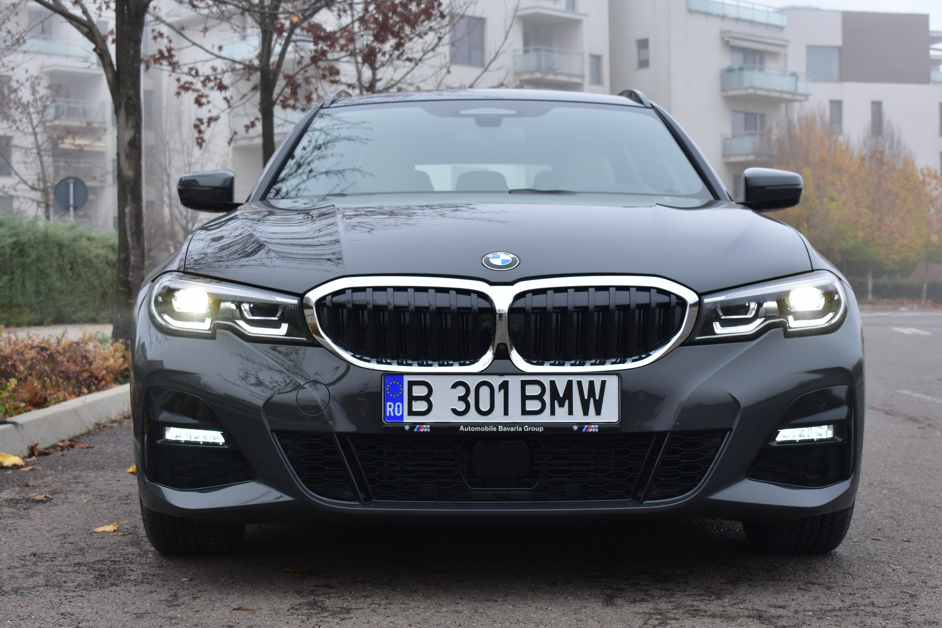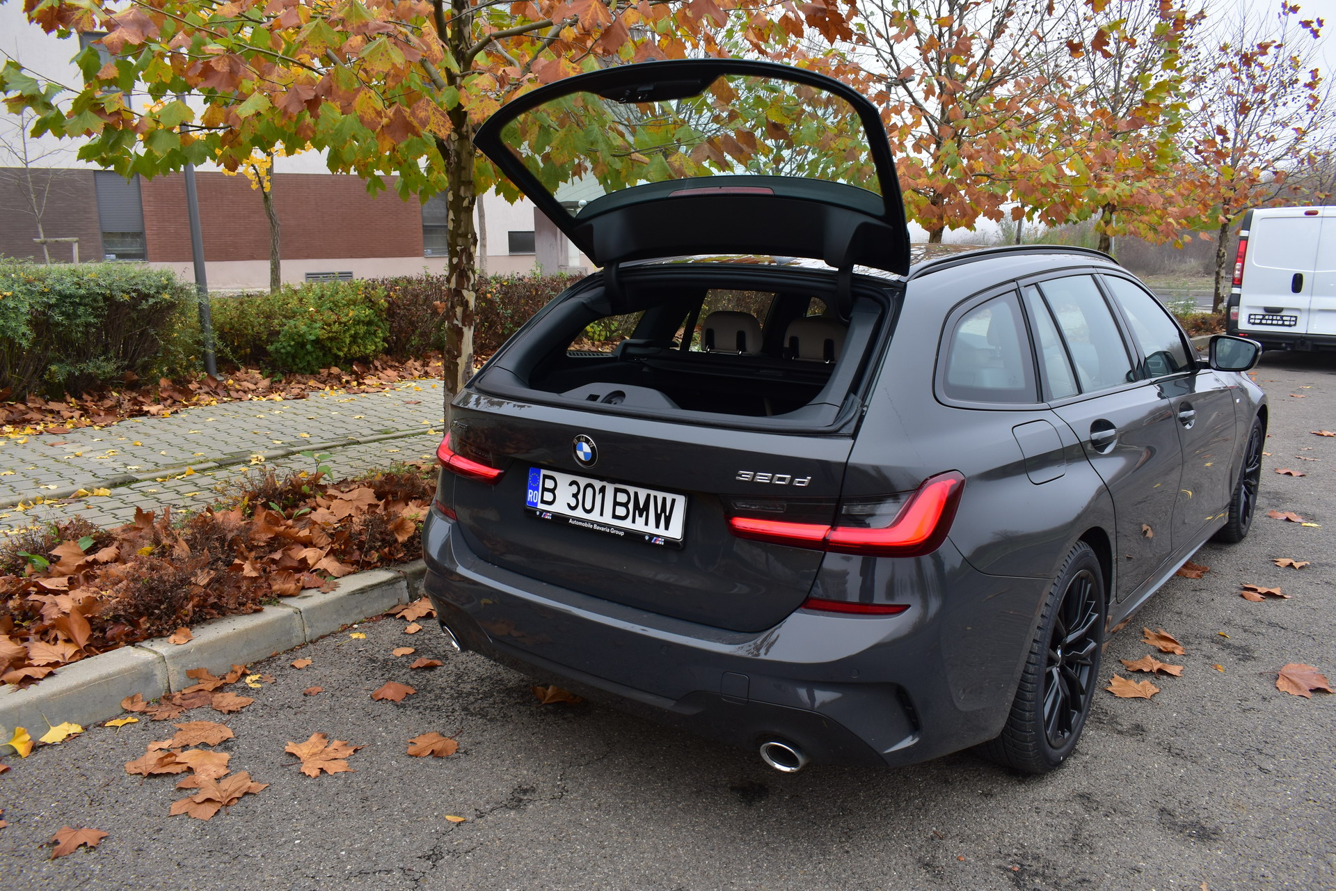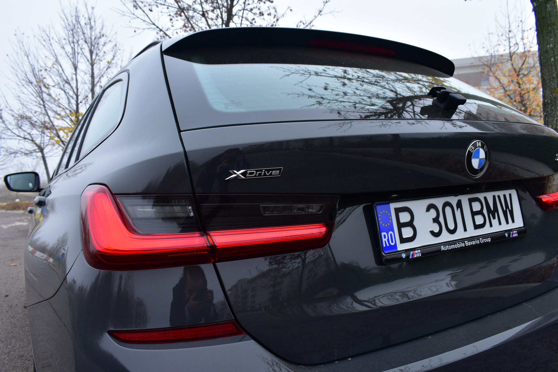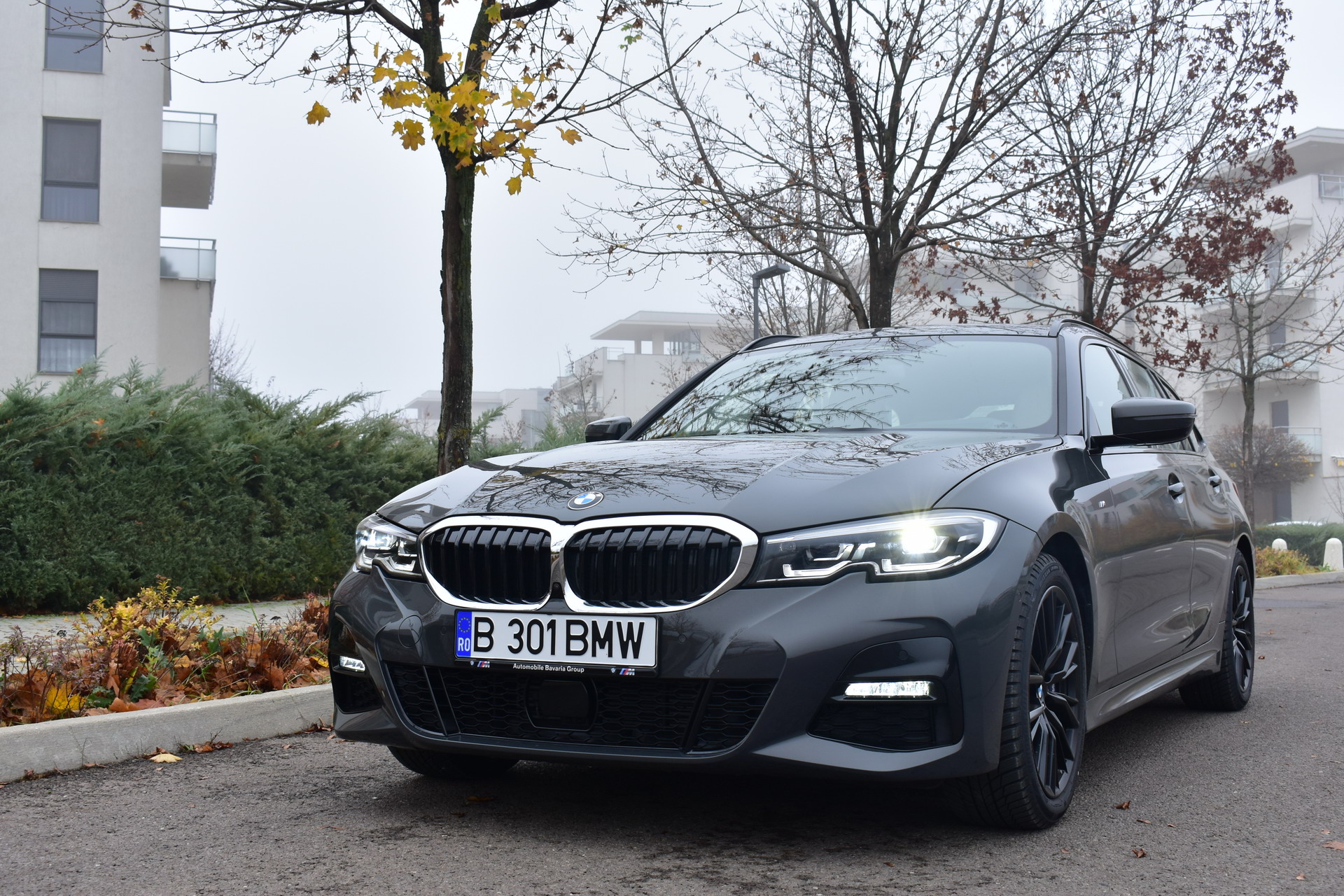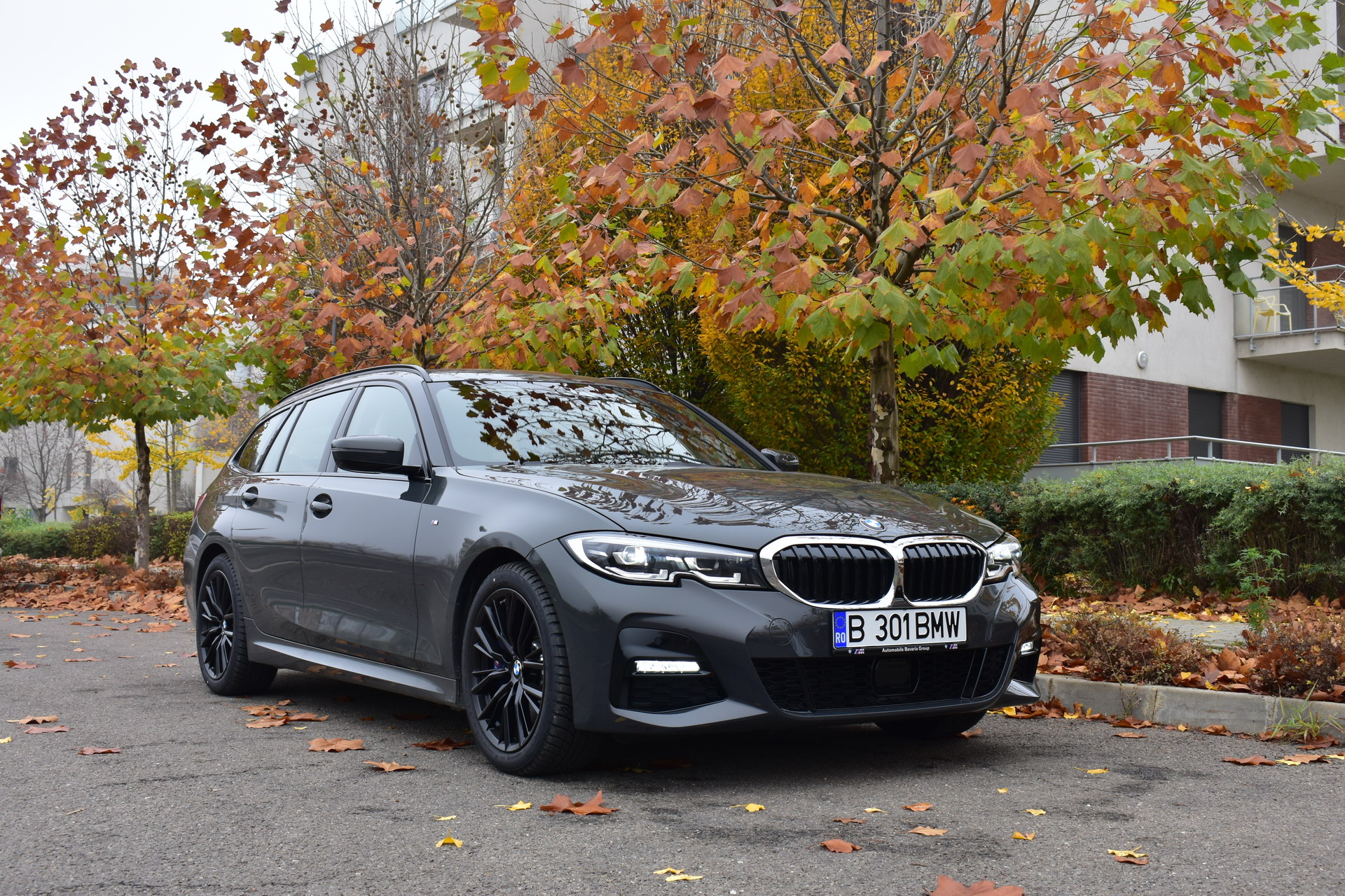 The BMW 320d xDrive Touring M Sport test car was sporting the BMW Individual high-gloss Shadow Line all-black exterior ornaments, the deep BMW Individual Dravit Gray metallic color and the 18-inch, matte black M Sport 796M alloy wheels with winter tires, which comprehensively round off the astonishing design of the Bavarian sports wagon.