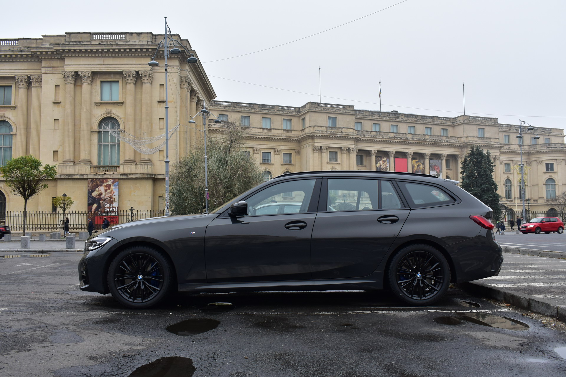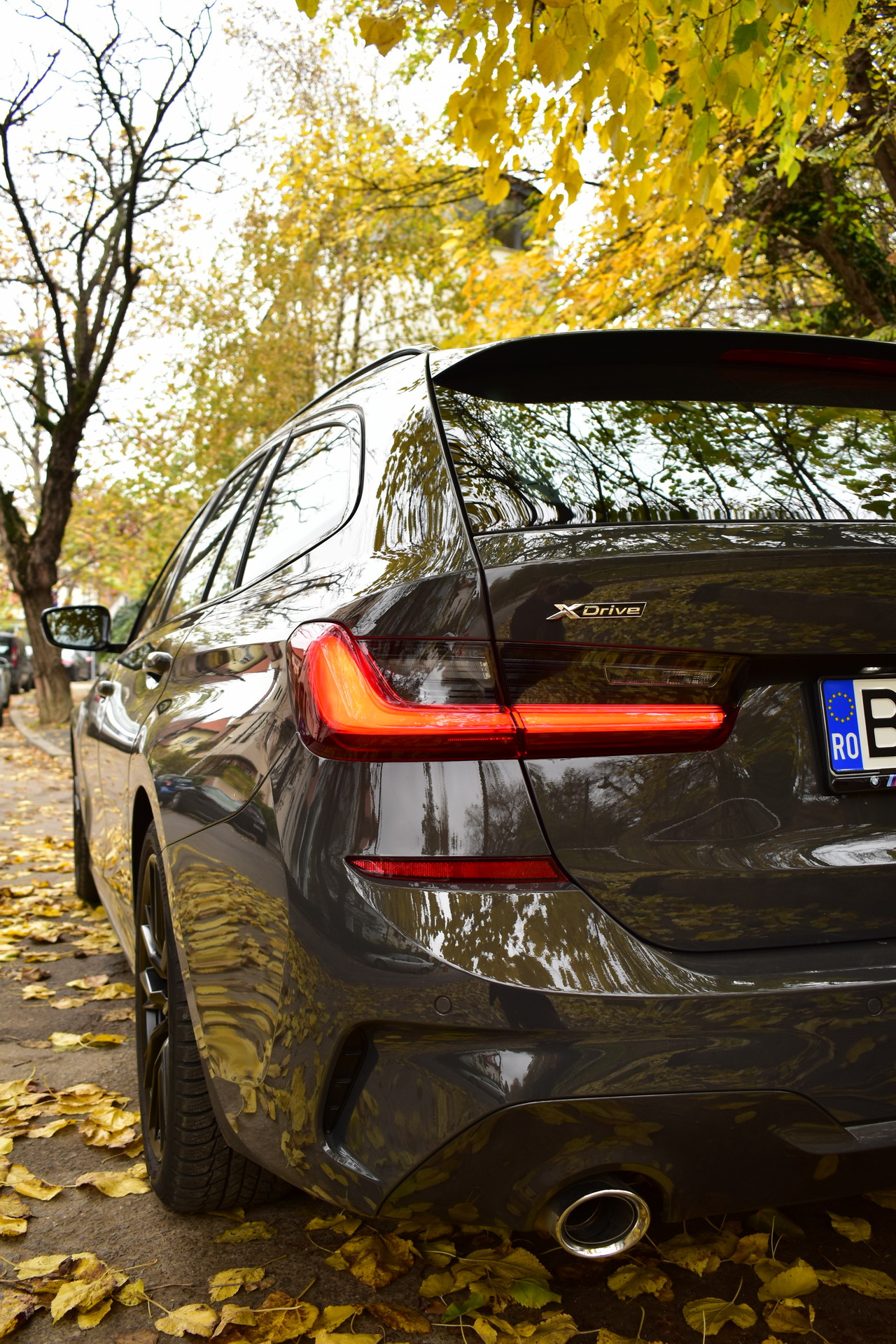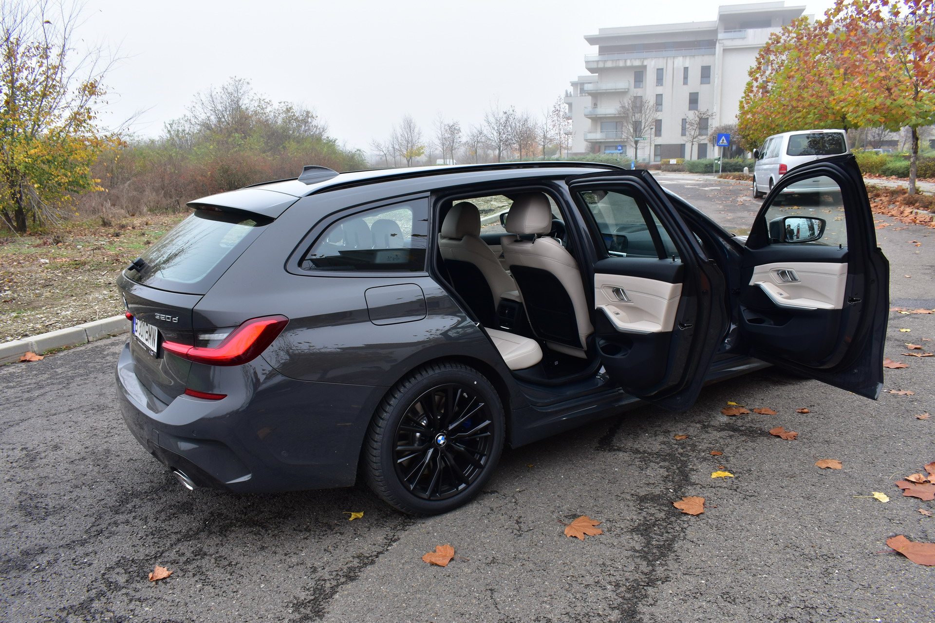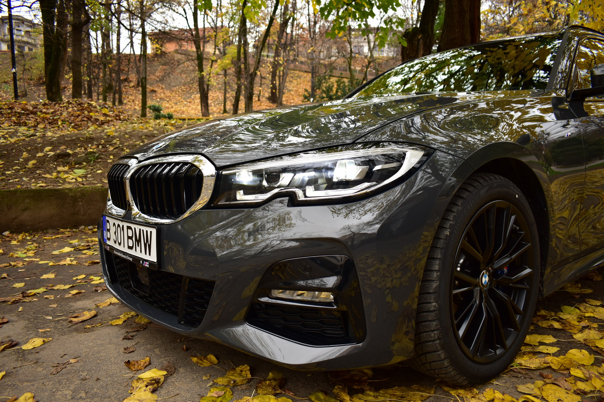 The BMW 320d xDrive Touring M Sport test car was sporting the BMW Individual high-gloss Shadow Line all-black exterior ornaments, the deep BMW Individual Dravit Gray metallic color and the 18-inch, matte black M Sport 796M alloy wheels with winter tires, which comprehensively round off the astonishing design of the Bavarian sports wagon.