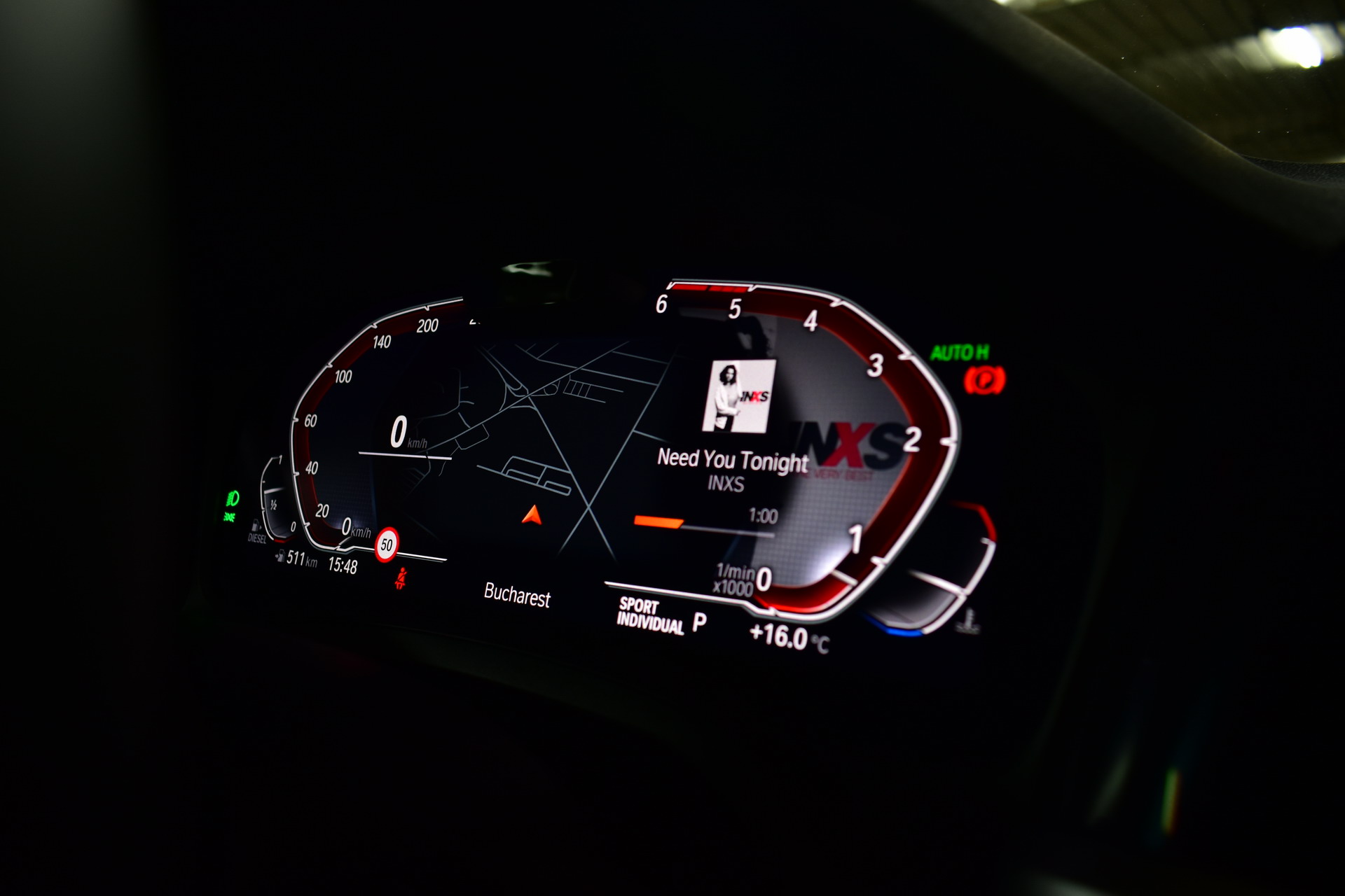 On the Live Cockpit, you can also get information on music artwork, instant output and torque, consumption and many others. One nice feature to be displayed on the central control screen is the Sport Display, which reveals to the driver relevant information of gravitational acceleration (side, forward, backward), turbine pressure, output and torque.