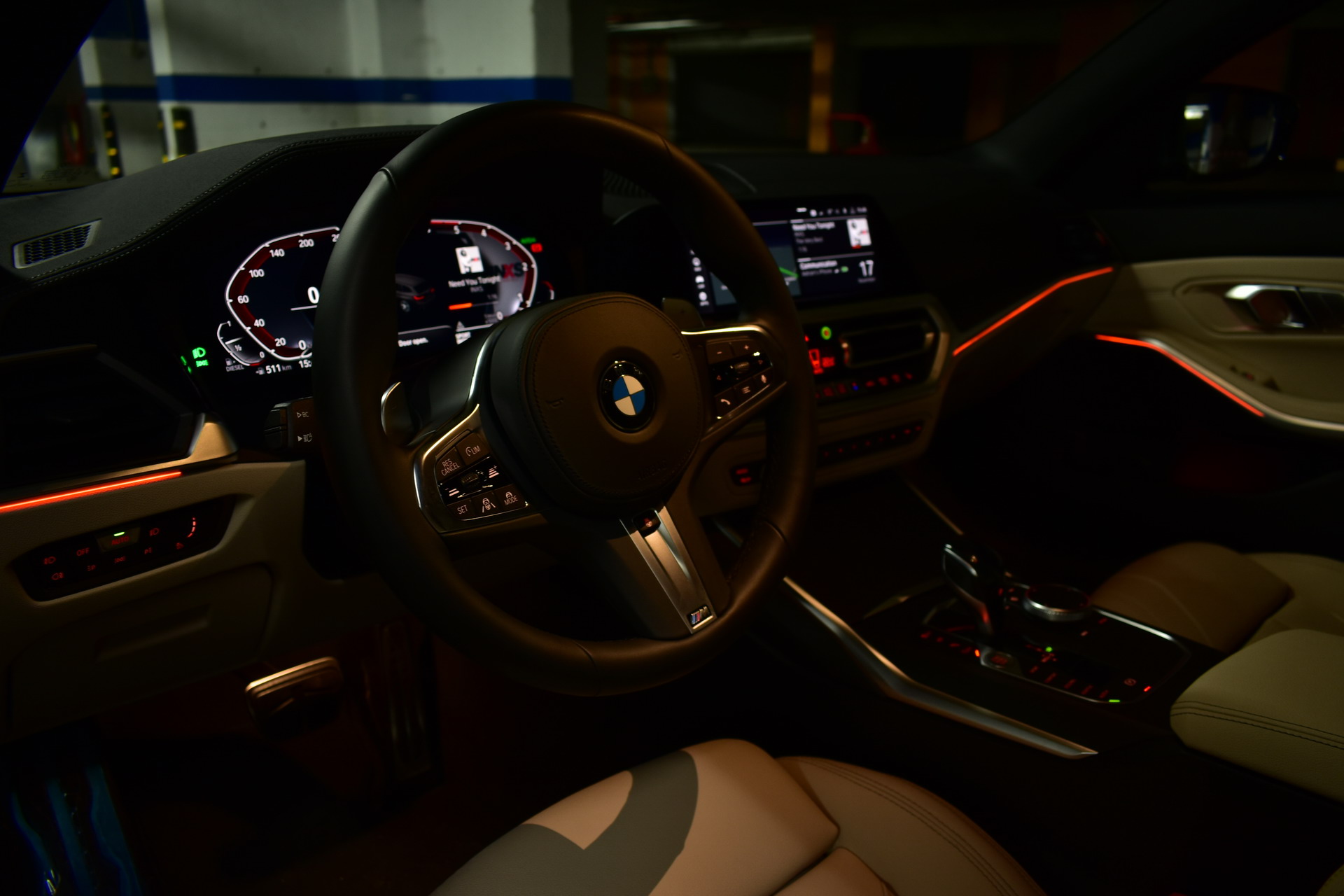 The cabin atmosphere is further enhanced by the special ambience lighting which can be configured via the control display in various shades, such as orange, green, blue, violet and green. I personally prefer the orange.