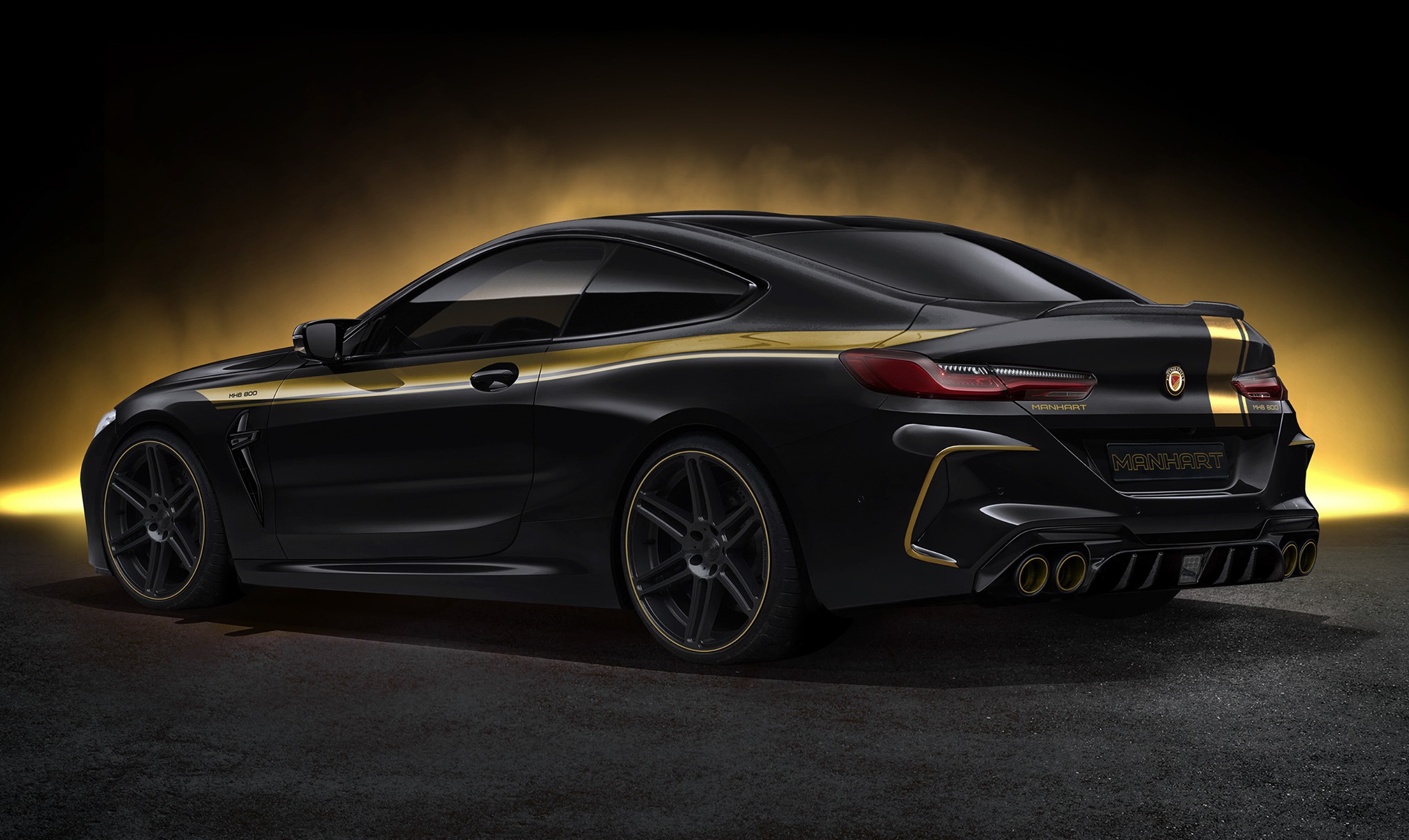 Firstly, we have the Manhart MH8 800 based on the BMW M8. The power increase for this particular model is expected to give the sports coupe around 800 hp. The first two photos show the front and rear of the coupe, which is already factory-blessed with 625 hp and carries the title of the fastest series BMW ever. With the 175 additional horsepower, the 3-second mark for the sprint from 0 to 100 km/h, should be easily achievable.