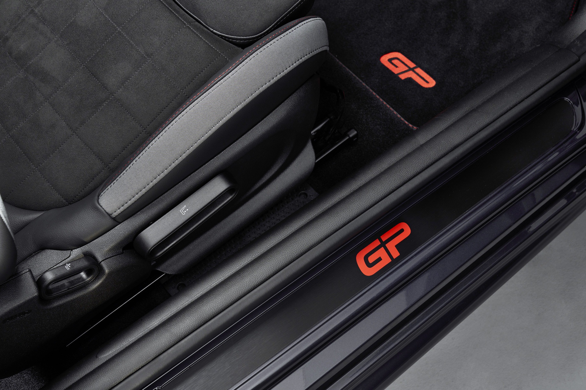 Meanwhile the GP logos on the front and rear, the outer sides of the roof spoiler and the door sill finishers, as well as the foils above the side skirts, are finished with a stylized “GP” in Rosso Red metallic matte.